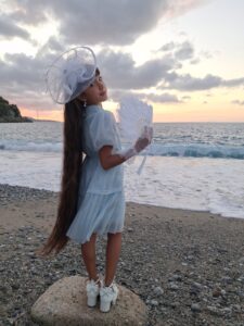 India Chiappini, 9 anni, originaria di Ferentino (FR), coltiva fin da piccolissima una forte passione per le arti sceniche. Studia danza classica e moderna dall’età di 3 anni, disciplina che ha contribuito a sviluppare la sua eleganza e consapevolezza corporea. Da circa tre anni si dedica con impegno ai corsi di portamento, che le hanno permesso di calcare con sicurezza le passerelle di tutta Italia.